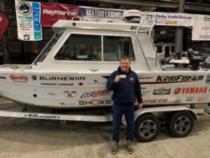 Congratulations to Traice Lundberg of Everett, WA on winning the 2021 Grand Prize Kingfisher Boat, powered by Yamaha Marine. The boat came fully-rigged with a WhoDat Tower, SHOXS Seats, Raymarine Electronics, Burnewiin Accessories, Scotty Downriggers, and a Dual Electronics stereo on a EZ-Loader tandem axle trailer. Read the Press Release HERE
